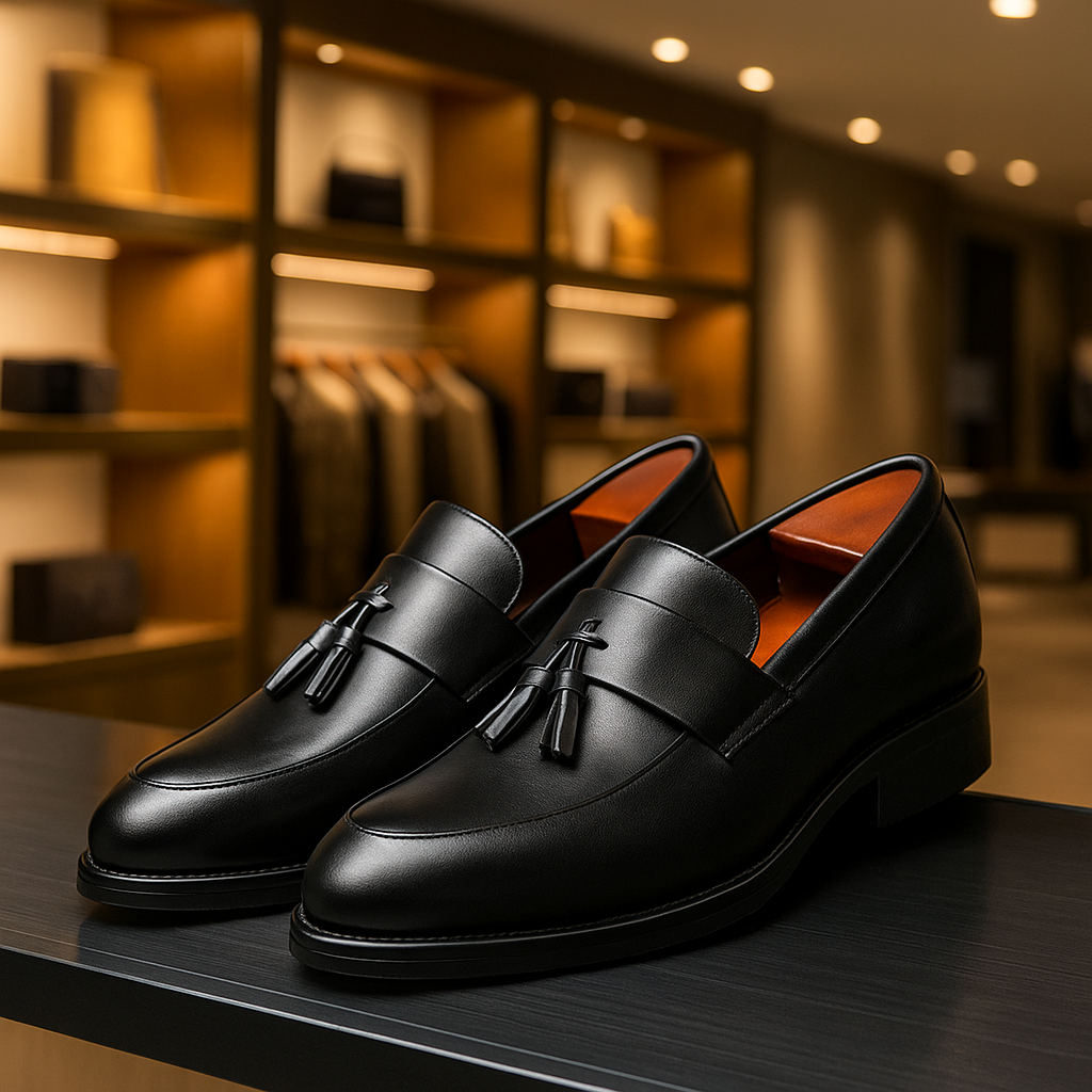 Elevate your everyday sophistication with these tasseled loafers, handcrafted from premium calfskin. Designed with the classic Zurigo last for a rounded, traditional English silhouette, these custom-made loafers combine timeless elegance with modern craftsmanship. The Goodyear Welt construction offers durability, flexibility, and a refined profile—ideal for both formal and smart-casual looks. Whether you're heading into the boardroom or attending a weekend event, these custom leather loafers showcase tailored style and comfort. Available in larger sizes and made-to-measure options, they're perfect for men seeking a luxurious fit and lasting quality. The red leather sole, crafted using the Goodyear Welt construction, offers durability, flexibility, and a refined profile—ideal for both formal and smart-casual styling. Whether you're stepping into the boardroom or attending a weekend event, these custom leather loafers make a statement of tailored style and comfort. Available in extended sizes and made-to-measure options, they are perfect for gentlemen seeking luxurious fit and enduring quality.